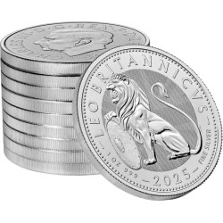 Stříbrná investiční mince The British Lion 2025 zobrazuje mohutného britského lva – symbol odvahy, síly a monarchie. Sedící lev s vyceněnými tesáky a tlapou opřenou o štít odkazuje na historickou odvahu a obranu království. Mince je ražena z jedné trojské unce ryzího stříbra (999/1000) britskou Královskou mincovnou The Royal Mint a nese latinský nápis LEO BRITANNICVS. Spojení klasického stylu a moderní ražby z ní činí atraktivní volbu pro investory i sběratele.