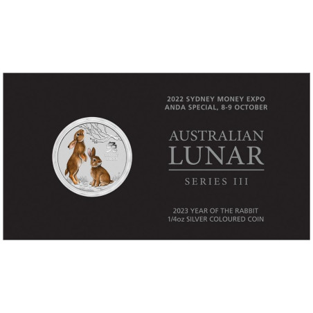 Stříbrná mince 1/4 Oz Lunar Series III Year of the Rabbit 2023 Kolorováno (rok Králíka)